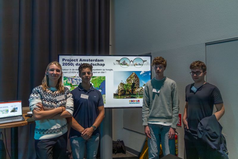 Project 3 min leestijd Rooftop Symposium In opdracht van Open Toren Dag stichting / Foundation Open The Doors onderzochten Madelief, Jack, Thijmen en Julian het dakpotentieel van Amsterdam en maakten zij een plan om de stad groener en biodiverser te maken.
